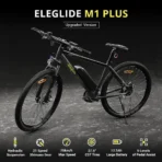 La Eleglide M1 Plus es una bicicleta eléctrica versátil, perfecta para los amantes de la naturaleza, las excursiones y los desplazamientos urbanos. Gracias al motor sin escobillas de 250 W con un par de 45 Nm, la transmisión Shimano de 21 velocidades y la batería de 36 V y 12,5 Ah, ofrece hasta 100 km de autonomía en modo asistido.